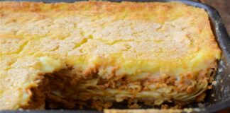 Γέμισε το ταψί με τυρί και πατάτες, το σκέπασε με...