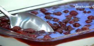 Γλυκό ψυγείου με ψητά κεράσια και ζελέ βυσσινάδας (Video)