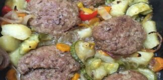 Ζουμερά μπιφτέκια με λαχανικά στη γάστρα