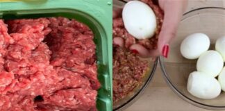 Άπλωσε τον κιμά σε πυρέξ και έβαλε πάνω 5 αυγά με...