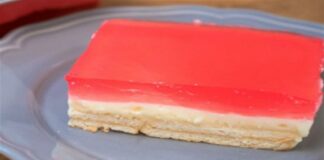 Μαμαδίστικο γλυκό ψυγείου με ζελέ, κρέμα και μπισκότα (vid)