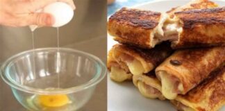 Τέλειες αυγοφέτες ρολό με τυρί του τοστ και ζαμπόν, έτοιμες σε...
