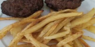 Αφράτα μπιφτέκια με πατάτες φούρνου σαν τηγανητές