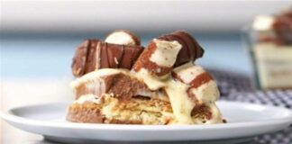 Μοναδικό γλυκό ψυγείου με φρυγανιές, κρέμα και γκανάζ σοκολάτας