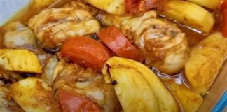 “Βαφτισμένο” κοτόπουλο σε σάλτσα ντομάτας με 2 υλικά “έκπληξη” και πατάτες...