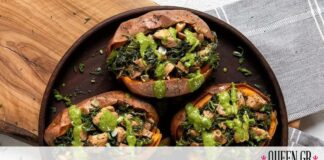 Άκης Πετρετζίκης: Γλυκοπατάτες γεμιστές με κοτόπουλο και κέιλ