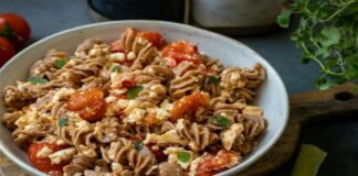 Μακαρόνια ολικής με φέτα και ντομάτα