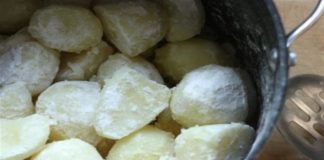 Κόβει σε κύβους τις πατάτες, τις αλευρώνει και προσθέτει σκόρδο και...