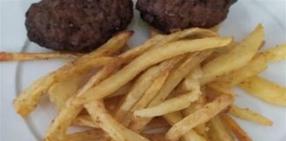 Αφράτα μπιφτέκια με πατάτες φούρνου σαν τηγανητές