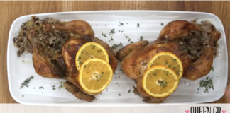 Γεμιστό κοτόπουλο με συκωτάκια, κάστανο και κουκουνάρι από τον Άκη