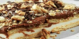 Εύκολο γλυκό ψυγείου με μπανάνες, μπισκότα και κρέμα γάλακτος