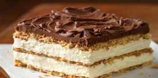 Μπισκοτογλυκό ψυγείου με ανάλαφρη κρέμα και γλάσο σοκολάτας