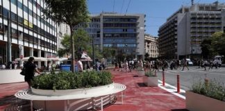 Με νερό καθάρισαν τις αντιγκράφιτι ζαρντινιέρες στο Σύνταγμα – Βίντεο