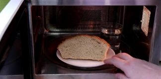 Βάζει μια φέτα ψωμί και ένα ποτήρι νερό στο φούρνο μικροκυμάτων...