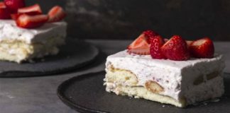 Θεϊκό γλυκό ψυγείου με βραστή κρέμα και φράουλες