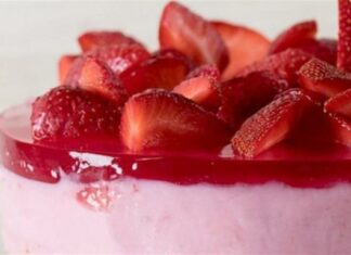 Εύκολο γλυκό ψυγείου με γιαούρτι με φράουλες