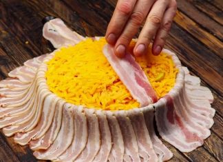 Γέμισε το ταψί με Τσένταρ & Πατάτες, το σκέπασε με 45 Φέτες Μπέικον και...
