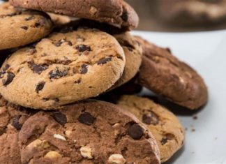 Αφράτα σοκολατένια μπισκότα με ξηρούς καρπούς και σταφίδες