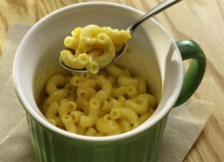 Γεμίζει μια κούπα του καφέ με μακαρόνια και τη βάζει στο φούρνο μικροκυμάτων –...