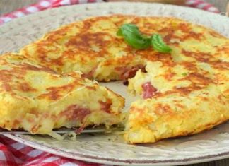 Πίτσα στο τηγάνι με ζύμη πατάτας, ζαμπόν και τυρί