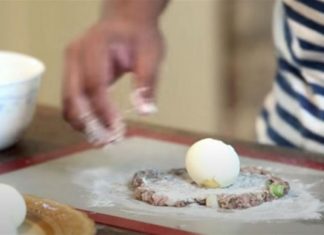 Τυλίγει βραστά αυγά με κιμά και φτιάχνει κάτι φανταστικό!