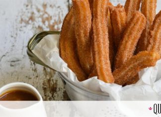 Υλικά για τα churros:200 ml Νερό100 γρ. Βούτυρο6 γρ. Ζάχαρη, κρυσταλλική3 Αυγά150 γρ. Aλεύρι γ.ο.χ2 γρ. ΑλάτιΗλιέλαιο για το τηγάνισμα Υλικά για τη καραμέλα βουτύρου:150 γρ. Ζάχαρη, κ...