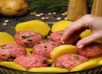Στρώνει σε ένα ταψί πατάτες και βάζει από πάνω μπάλες από κιμά – Θα...
