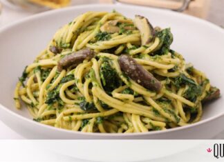 Σπαγγέτι με μανιτάρια, σπανάκι και πέστο βασιλικού, από τον Γιώργο Τσούλη