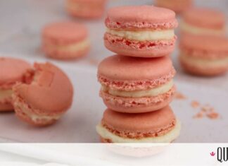 Για τα μακαρόν:210 γρ. ζάχαρη άχνη100 γρ. αλεύρι αμυγδάλου90 γρ. ζάχαρη, κρυσταλλική3 ασπράδια, από αυγά medium1 πρέζα αλάτι½ κ.γ. εκχύλισμα βανίλιαςΚόκκινο χρώμα ζαχαροπλαστικήςΓια τη γέμιση:360 γρ. ...