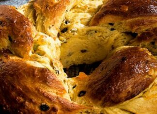 Γεμιστό τσουρέκι πορτοκάλι με αυγά από την Αργυρώ Μπαρμπαρίγου