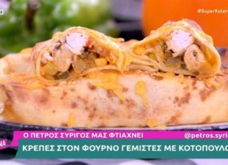 Συνταγή για γεμιστές κρέπες στον φούρνο με κοτόπουλο