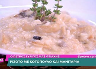 Συνταγή για ριζότο με κοτόπουλο και μανιτάρια από τον Πέτρο Συρίγο