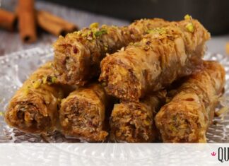 150 γρ. φιστίκια, θρυμματισμένα270 γρ. βούτυρο, λιωμένο1 κ.γ. κανέλα, τριμμένοΓια το σιρόπι:50...