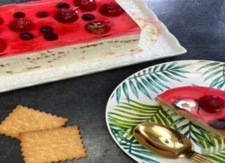 Πανεύκολο και δροσερό γλυκό ψυγείου με φράουλες και μπισκότα