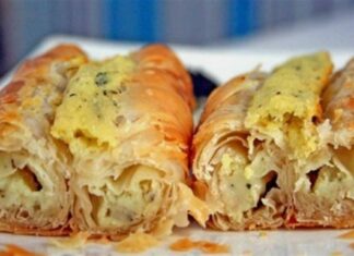 Μπουρεκάκια με λιωμένο κασέρι και γαλοπούλα