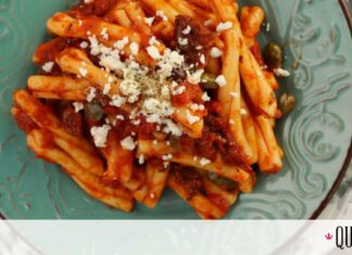 Σκιουφηχτά με λιαστή ντομάτα, ελιές και φέτα