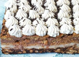 «Παραδεισένιο» γλυκό ψυγείου με ζαχαρούχο γάλα, σοκολάτα και μπισκότα