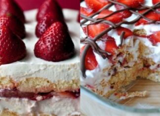Δροσερό γλυκό ψυγείου με κρέμα και φράουλες έτοιμο σε 5′