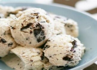 Κολασμένο γλυκό ψυγείου με τούρτα παγωτό και τραγανή βάση από μπισκότα