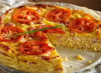 Τούρτα μακαρονιών με 4 τυριά, ζαμπόν και ντομάτα έτοιμη σε 10′