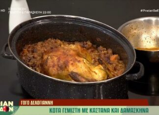 Ακολουθεί μια συνταγή που δεν συναντάμε τόσο συχνά, αλλά όλοι λατρεύουμε όταν έρθει η στιγμή αυτή. Η Γωγώ Δελογιάννη μας προτείνει ένα ιδιαίτερο πιάτο με γλυκόξινες γεύσεις, κότα με κάστανα και δαμάσκηνα. Γεμίζοντας το σπίτι με λαχταριστές μυρωδιές και τα πιάτα με ένα πεντανόστιμο φαγητό.ΔΕΙΤΕ ΤΟ ΒΙΝΤΕΟ ΕΔΩ