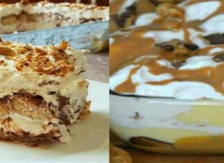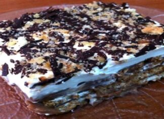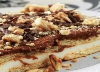 Κολασμένο γλυκό ψυγείου με μπισκότα βουτύρου έτοιμο σε 15′