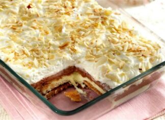 Έτοιμο σε 10 λεπτά – Εύκολο γλυκό ψυγείου με σοκολατένια βάση και πλούσια κρέμα