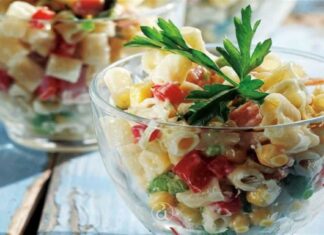 Δροσιστική και με ελάχιστες θερμίδες – Ζουμερή μακαρονοσαλάτα με καλαμπόκι και αρακά