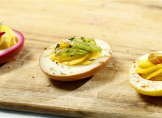 Γέμισε τα βραστά αυγά με κρέμα από τον κρόκο τους, απάκι, τσίλι και μυρώνια...