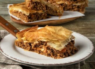 Σμυρνέικη κιμαδόπιτα με χωριάτικο φύλλο και μυρωδικά