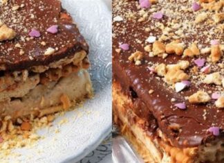 Σοκολατένιο “όνειρο”: Γλυκο ψυγειου με πραλίνα σοκολάτας, μπανάνα και μπισκότα έτοιμο σε 5′