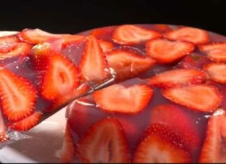 “Γυάλινο” φραουλένιο γλυκό ψυγείου με 3 υλικά έτοιμο σε 3′