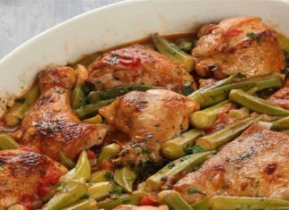 Λαχταριστό κοτόπουλο με μπάμιες – Πριν το βγάλουμε από το φούρνο σκεπάζουμε με λαδόκολλα