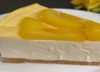 Γλυκό ψυγείου ροδάκινο έτοιμο σε 5′ χωρίς γάλα και ζάχαρη